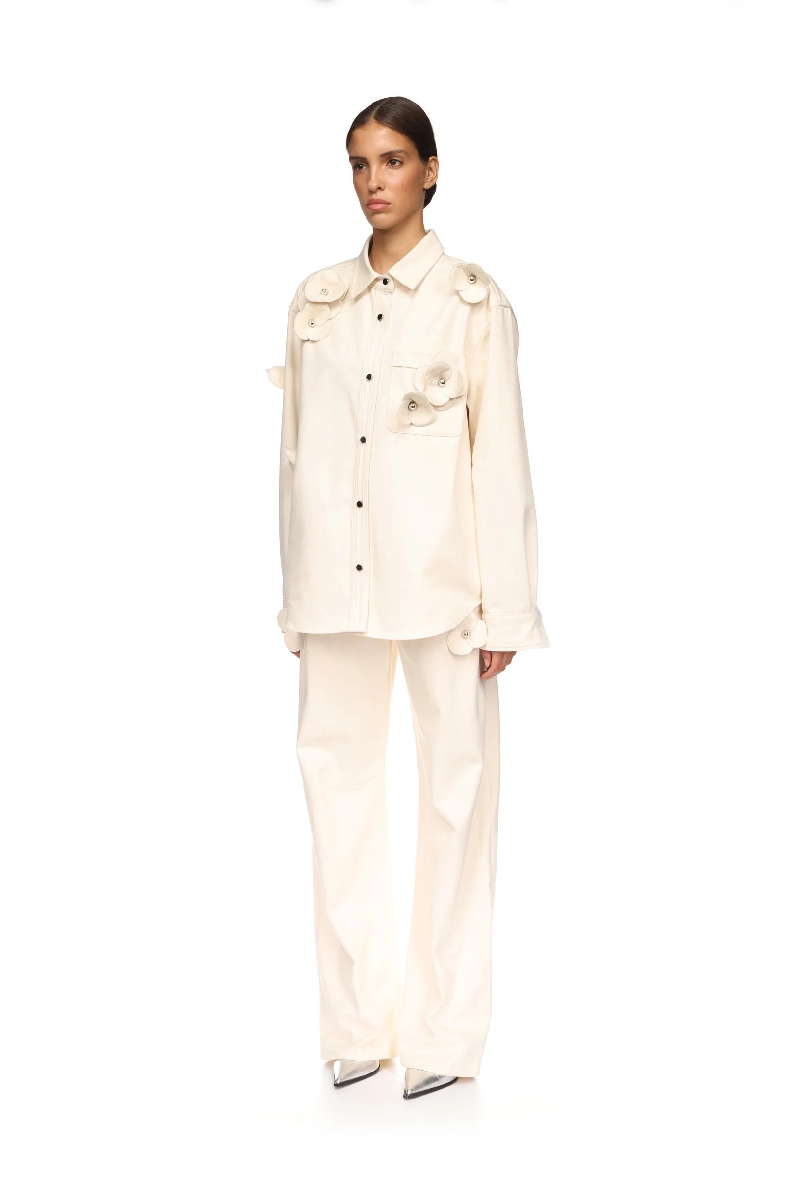 Made with 100% cotton, this ecru denim shirt is cut in a relaxed style. It features 3D flower embroidery and fastens with buttons down the front.